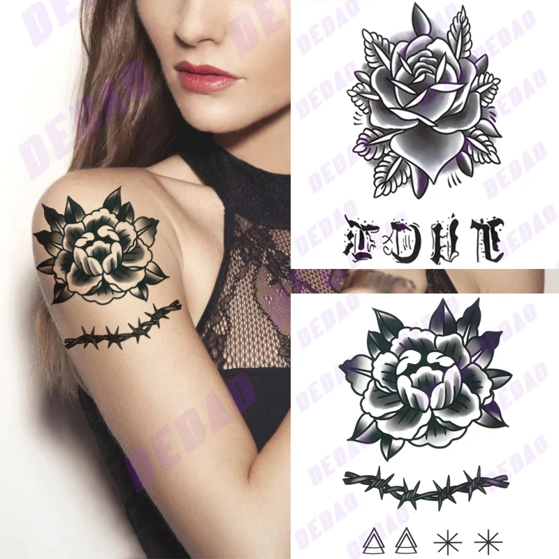 Tatuaje Temporal Etiqueta Negro Flor Diseno De Rosa Tatuaje Impermeable Tatuajes Mano Tatuaje Falso Para Brazo Pegatina Para Hombres Mujeres Tatuajes Temporales Aliexpress