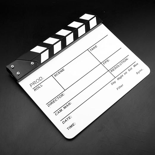 Amazon Com Black White Professional Acrylic Clapper Board Slate With Magnetic Sticks Adjustable Bolt For Tv Film Home Movie Action Cut Scene Director