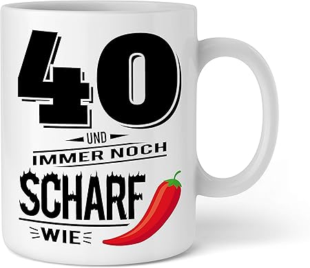 Shirtinator Mug With Quote I 40 Und Scharf Wie Chili I Gift Idea For 40th Birthday Gift Mum Dad Brother Sister Best Friend Amazon Co Uk Kitchen Home