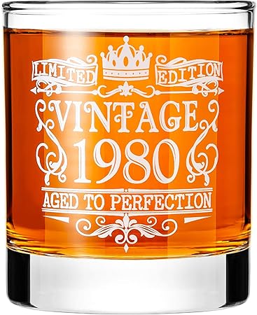 Crisky Vintage 1980 Whiskey Glass For Men 40th Birthday Gift Funny Birthday Gift Idea For Him Husband Father Brother Friends Party Favors Decorations 11 Oz With Box Amazon Co Uk Kitchen Home