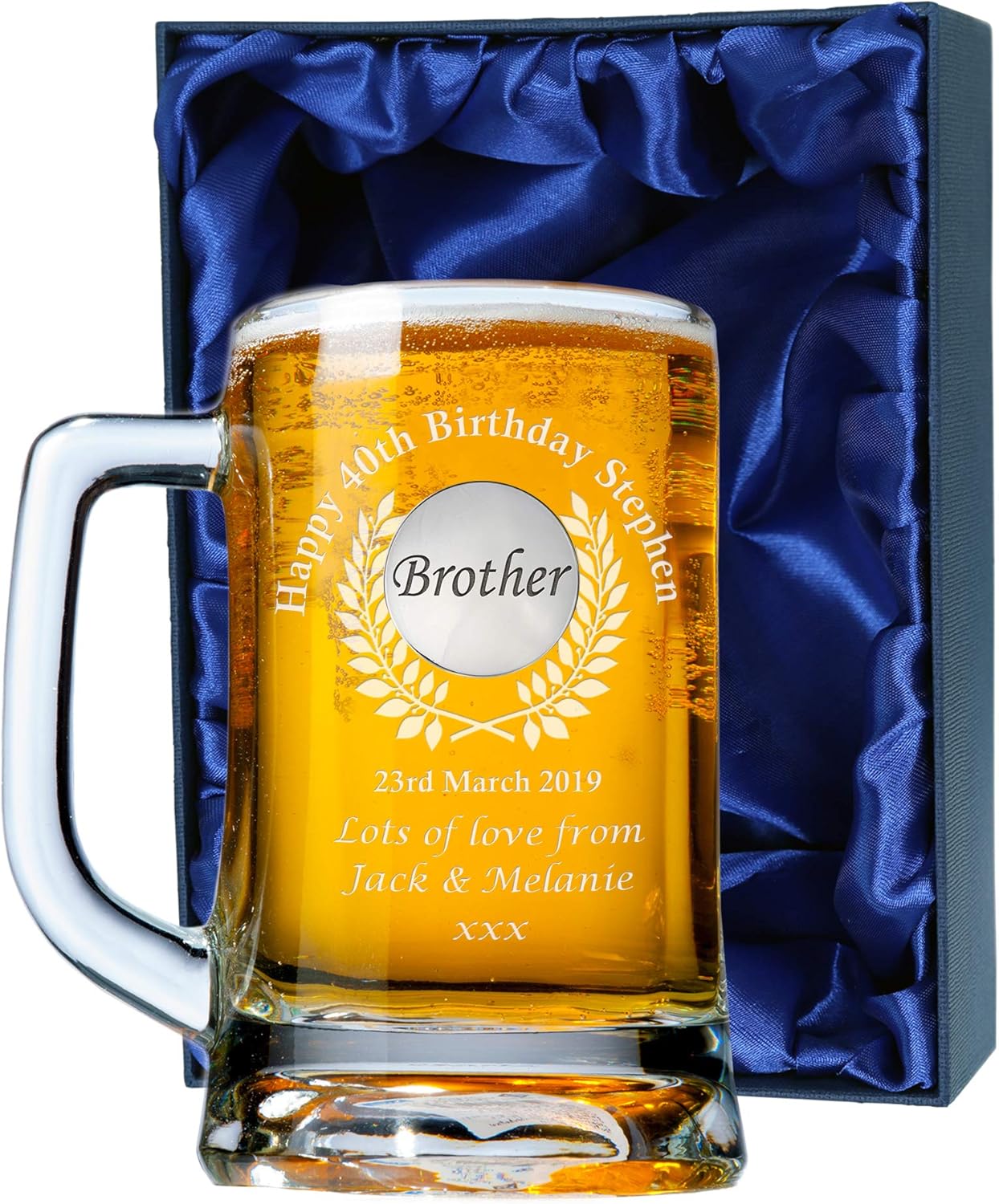 Great Gifts Men S 40th Birthday Engraved Brother Pint Glass Tankard In Satin Box Amazon Co Uk Kitchen Home