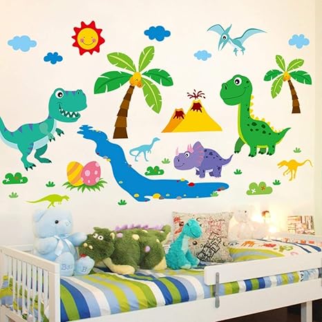 Jqsm Dinosaurio De Dibujos Animados Animales Pegatinas De Pared Diy Arbol De Coco Mural Calcomanias Para Ninos Habitacion Bebe Dormitorio Decoracion Amazon Com Mx Hogar Y Cocina