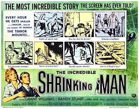 ○The Incredible Shrinking Man [Full Movie]: Amazon Com Movie Posters The Incredible Shrinking Man 27 X 40 Posters Prints The Incredible Shrinking Man [Full Movie]⌅: The Incredible Shrinking Man Movie Poster 〖DvdRip〗 aka (Die Unglaubliche Geschichte des Mr. C 1957) "While on a boating trip, Scott Carey is exposed to a radioactive cloud. Nothing seems amiss at first, but several months later Scott realizes that he's shrunk in height by several inches. He sees a doctor, who admits that he's baffled. As Scott continues to shrink, decreasing to three feet tall, he becomes bitter, and lashes out at his wife, Louise. He begins to fear a cure will never be found -- since even as he becomes a national sensation, he's still shrinking." film genres: Drama, Science Fiction, Horror.