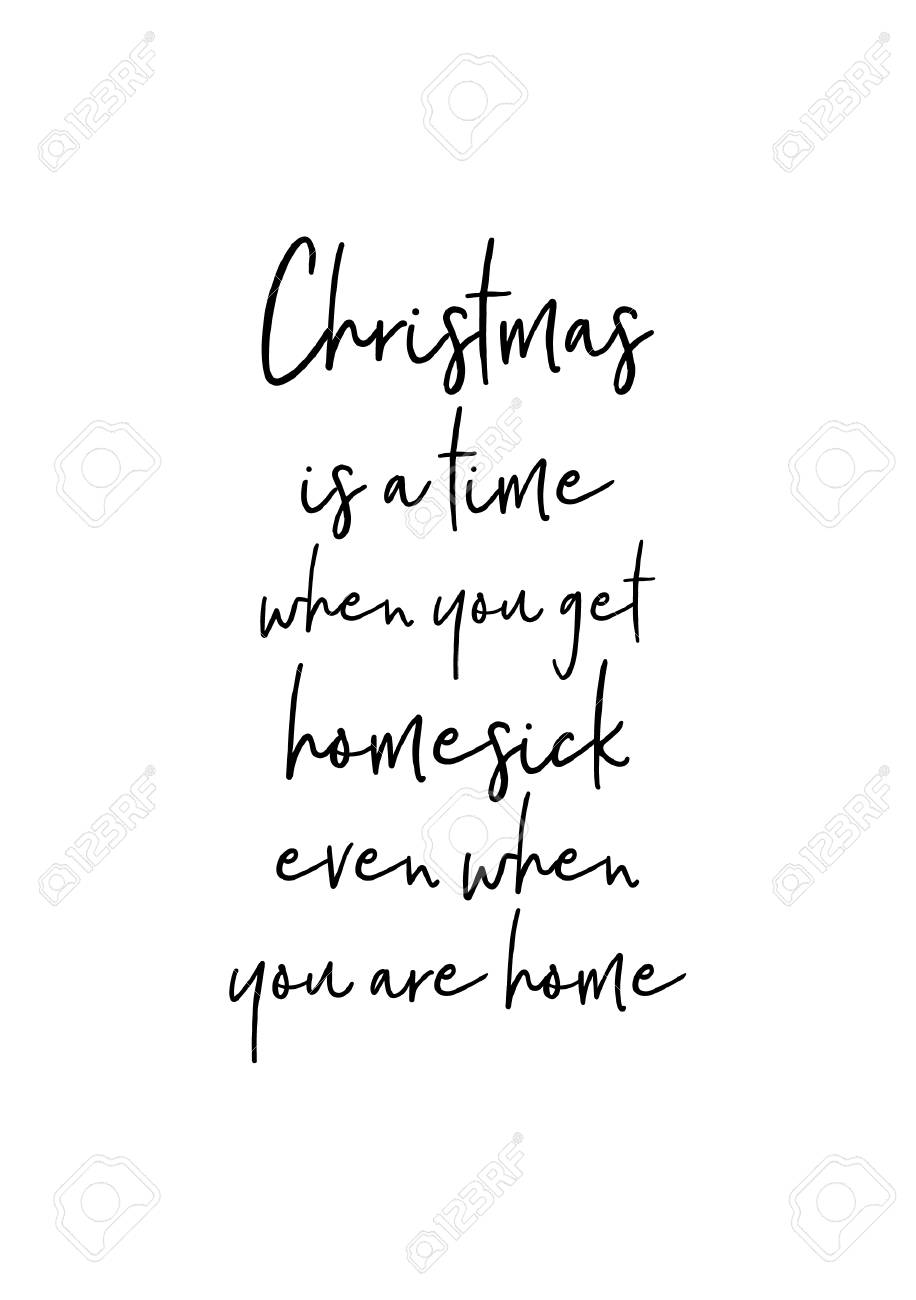 Cartão de Natal com caligrafia de escova. Preto do vetor com fundo branco. O Natal é uma época em que você fica com saudades de casa - mesmo quando está em casa.